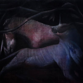 對於繪畫的接觸,可以追溯到學齡前。那時侯父母工作忙碌,主要由阿公阿嬤照顧,他們就會給我一疊空白紙在客廳畫畫。但真的面臨到創作這件事,是到了藝術大學時,藉由觀看前輩的作品,才意識到可以用更謹慎的態度去呈現作品的樣貌。壓克力顏料的特性相較於油彩更為透明,可以表現更多的暈染層次,乾透後可以呈現更多的肌理。在濃厚的塗抹更有著不輸油彩的效果,在多方嘗試後便以壓克力顏料當作主要媒材。